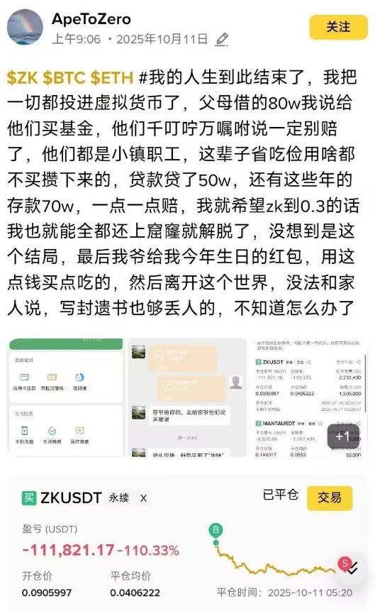 10月11日一早起来,看到群聊消息币圈在凌晨经历了多空双杀的大爆仓,好像是有个稳定币USDe被人借着特朗普的消息爆破脱锚了,然后开始循环清算。