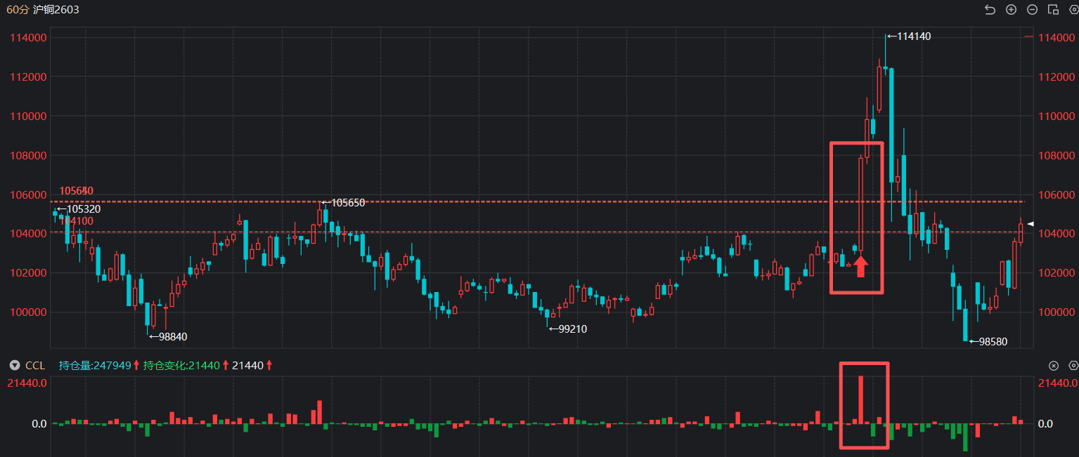 同样地,29日上午,沪铜也来了一波增仓突破,与沪铝相似,接连突破短期压力位和前高,上涨的力度相当强,当天收涨6.71%。也同样地,盘中找不到归因,但不妨碍先买入再研究的选手拿着浮盈等卖方慢慢归因。